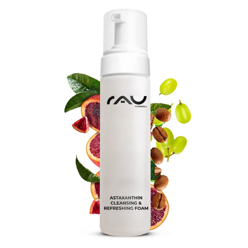 Cremiger Reinigungsschaum mit Astaxanthin und Koffein — reinigt sanft, schuetzt vor freien Radikalen und belebt muede Haut.